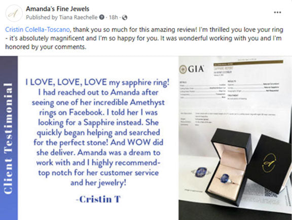 Madeleine G. absolutely LOVED her custom tanzanite earrings from Amanda's Fine Jewels.